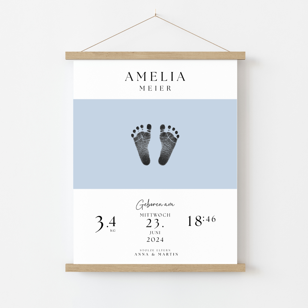 Entdecke unser einzigartiges personalisiertes Fußabdruck-Geburtsposter für Babys und Kinder – ein wunderschönes Erinnerungsstück an die kleinen Füßchen deines Kindes.