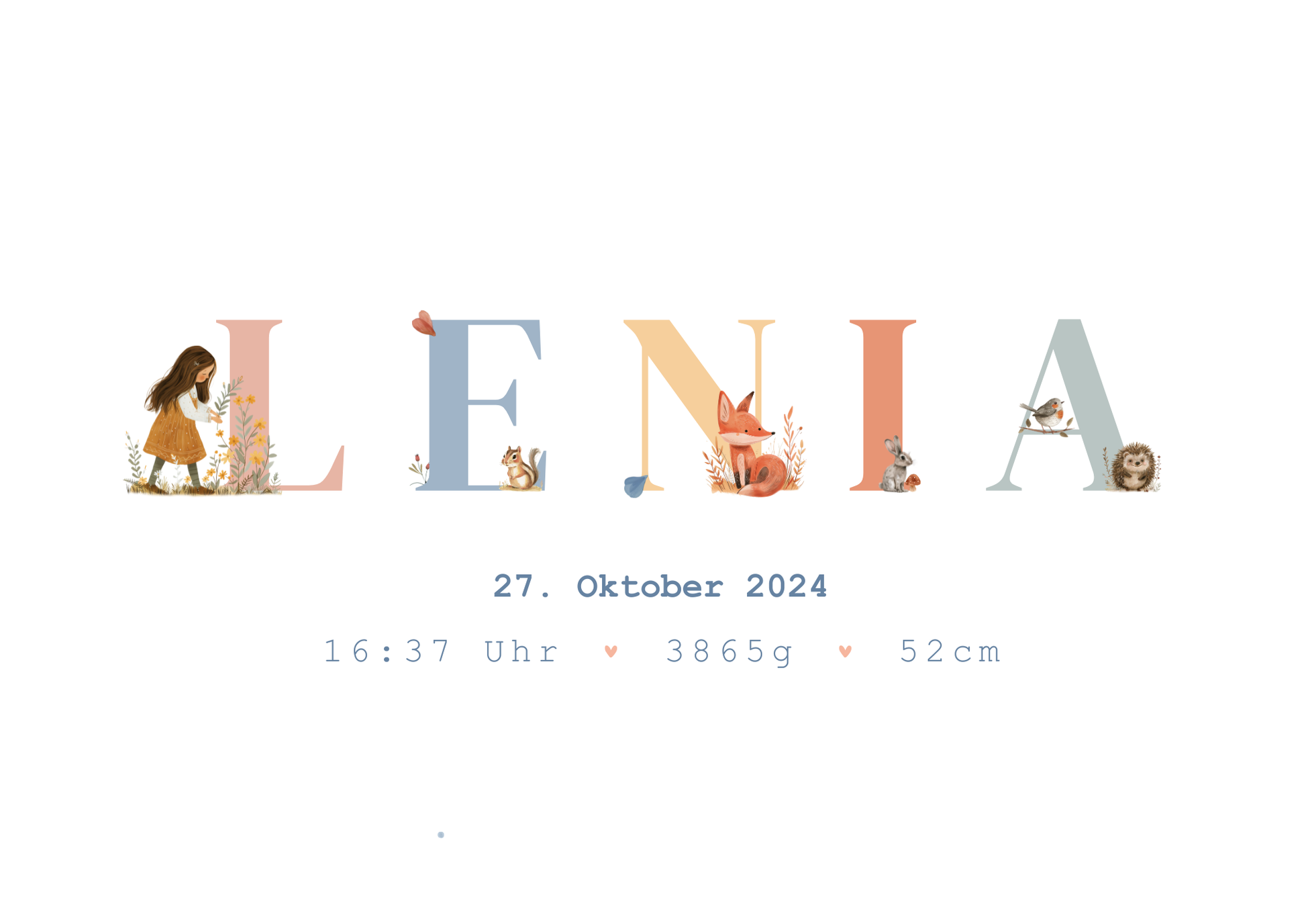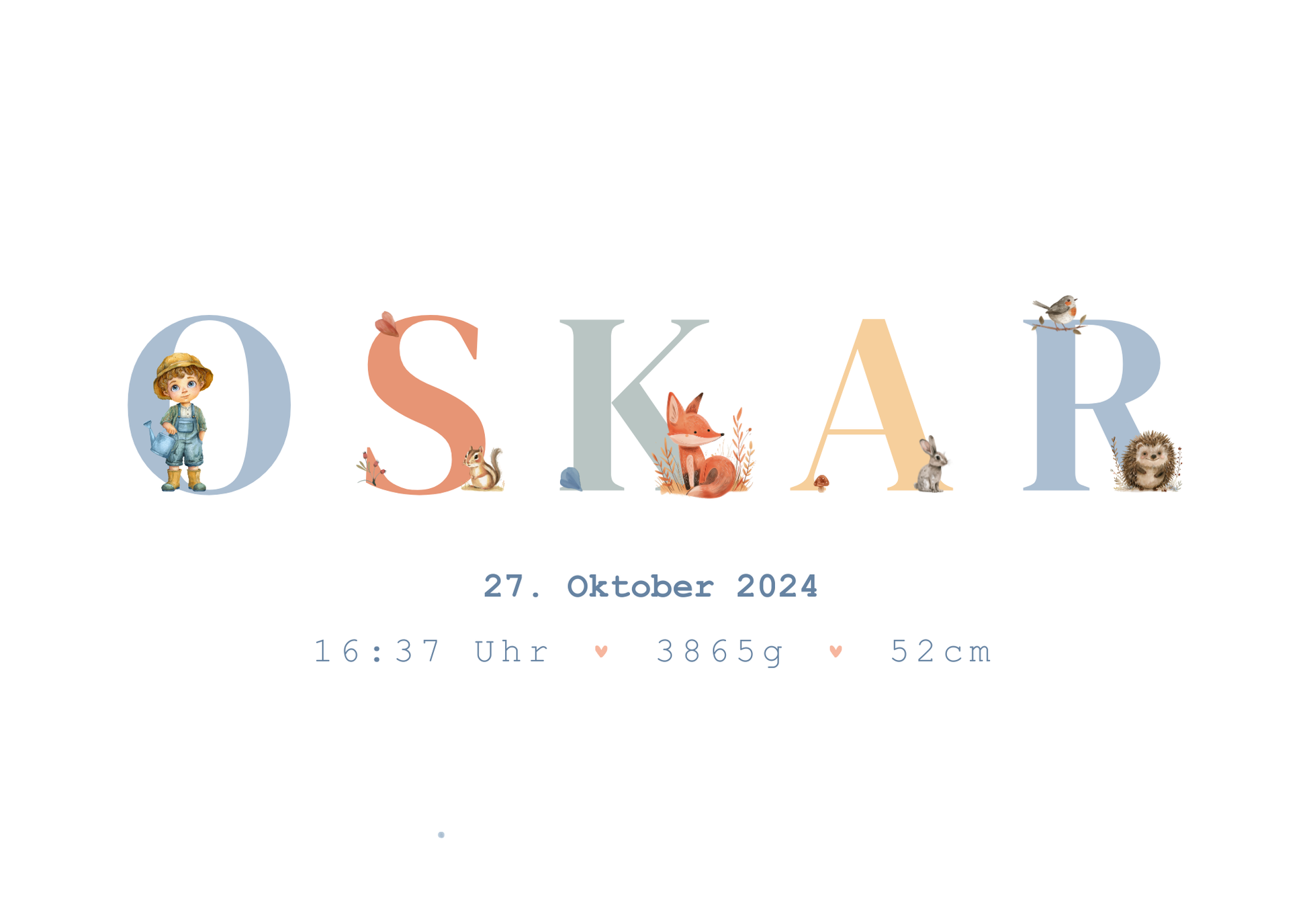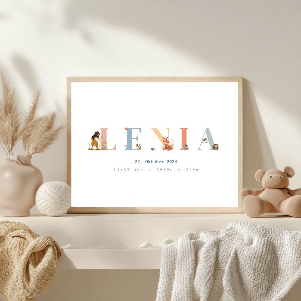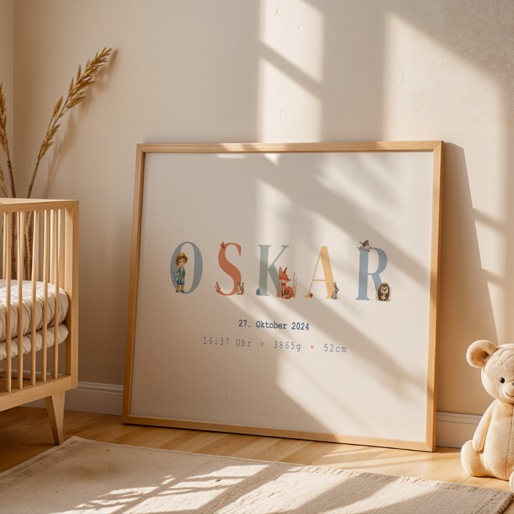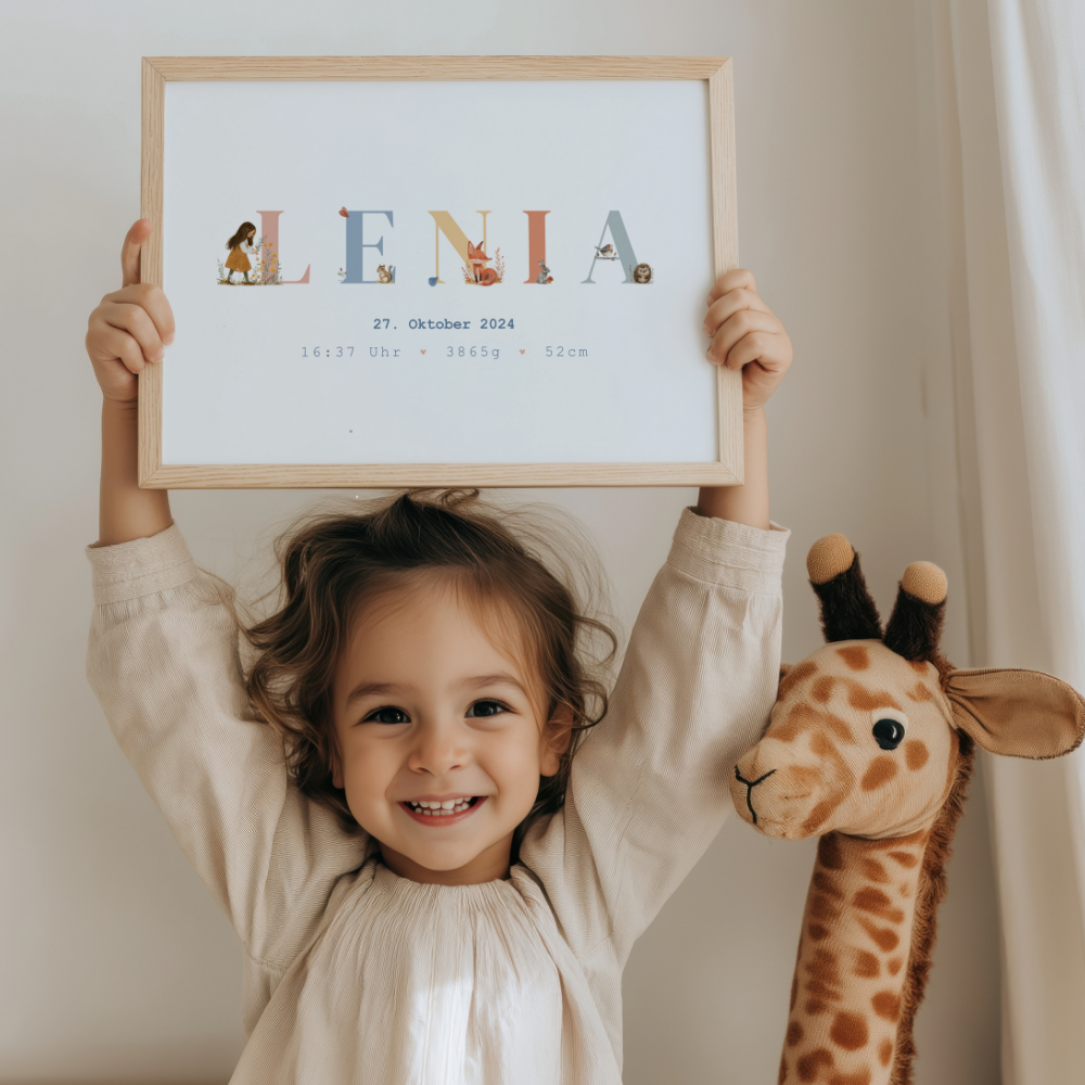 Dieses liebevoll gestaltete Geburtsposter verewigt den Namen und die Geburtsdaten deines Kindes und wird so zu einem ganz persönlichen Highlight im Kinderzimmer.